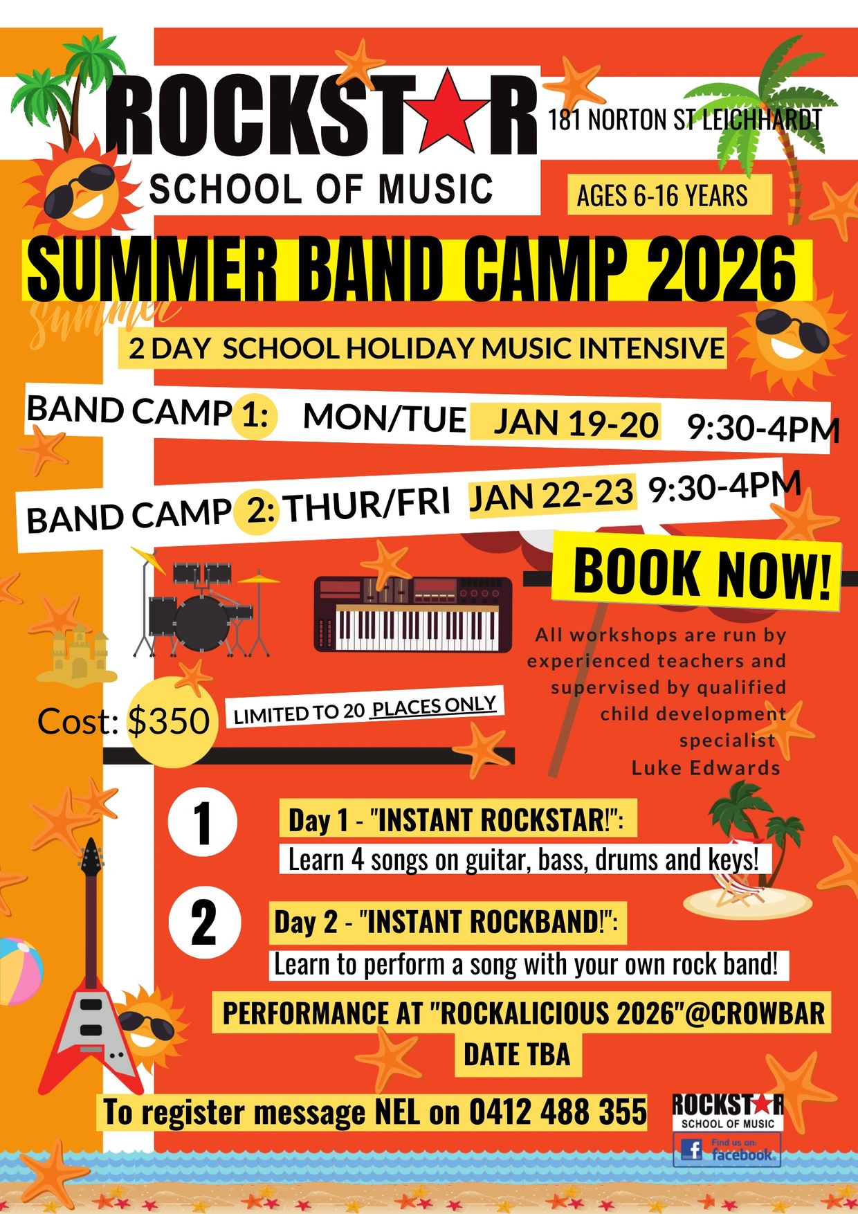As you would all now know, Rockstar now has rock royalty - Mark Evans - bass player for AC/DC & Rose Tattoo. He is now teaching his bass guitar program called “Bassics”. Everyone is welcome to benefit from Mark’s expertise in bass guitar - students, parents, community members - and he is happy to do one off or ongoing lessons.